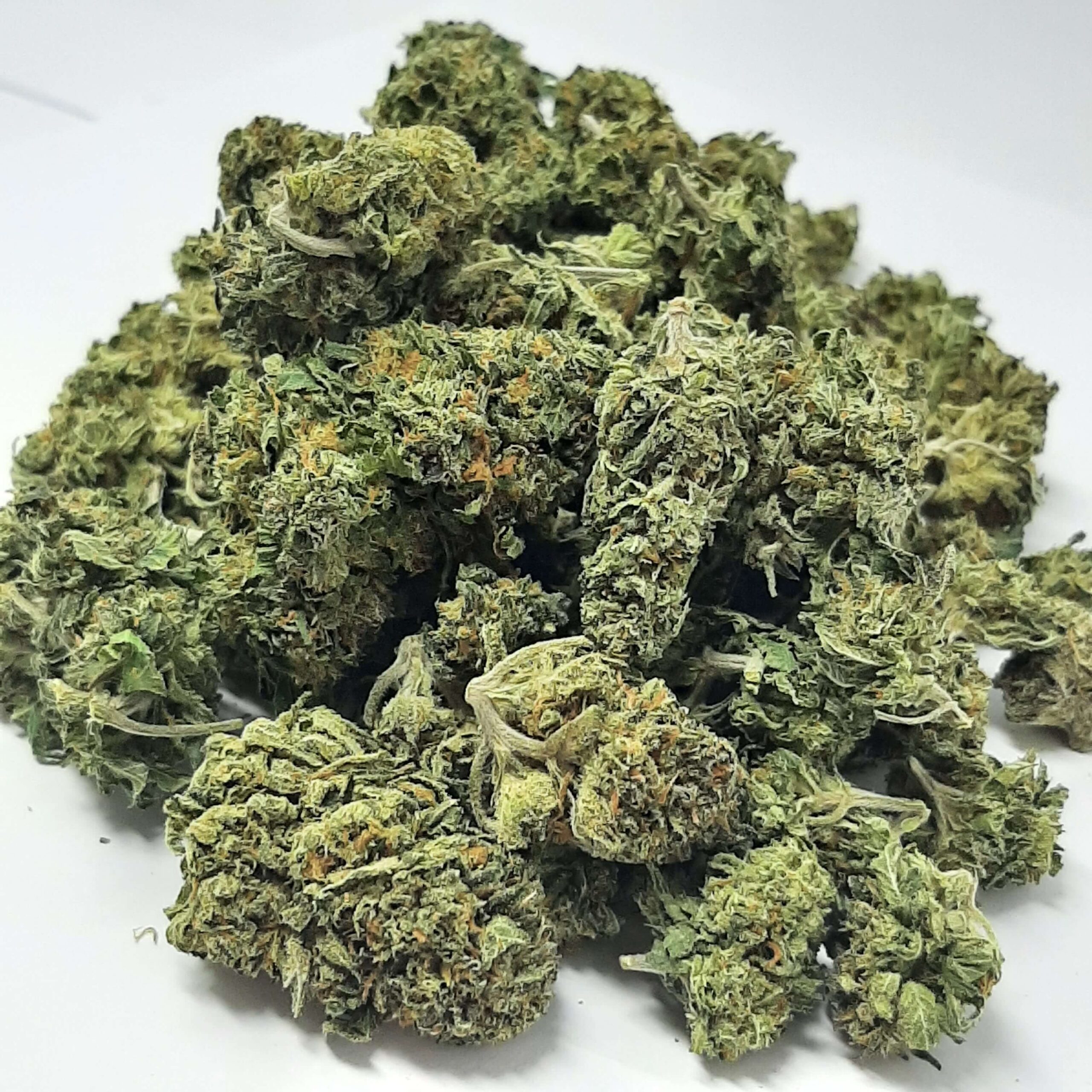 Ice Cream Cake is a rare indica dominant hybrid strain (75% indica/25% sativa) created through a cross of the Gelato 33 X Wedding Cake strains. With this bud, the name says it all in the flavor department. Ice Cream Cake packs a super delicious cheesy creamy flavor with a sweet nuttiness that lingers long after you finish your final toke. The aroma is of the same nature, with a light pungent effect to it that’s released as the nugs are burned. The Ice Cream Cake high is just as beautiful as the flavor, with lifted and relaxing effects that will have you kicking back in no time flat. The high starts with a rush of cerebral effects that lift your mind into a state of pure happiness and ease, pushing out any negative or racing thoughts immediately. Soon after, a relaxing body high will start to creep into your physical form, leaving you falling deeper and deeper into a couch-locked state of sedation before you eventually begin to drift away. With these calming effects and its high 20-25% average THC level, Ice Cream Cake is said to be perfect for treating those suffering from depression, chronic pain, insomnia, and nausea or appetite loss. This bud has small dense grape-shaped forest green nugs with thick orange hairs and frosty white crystal trichomes.