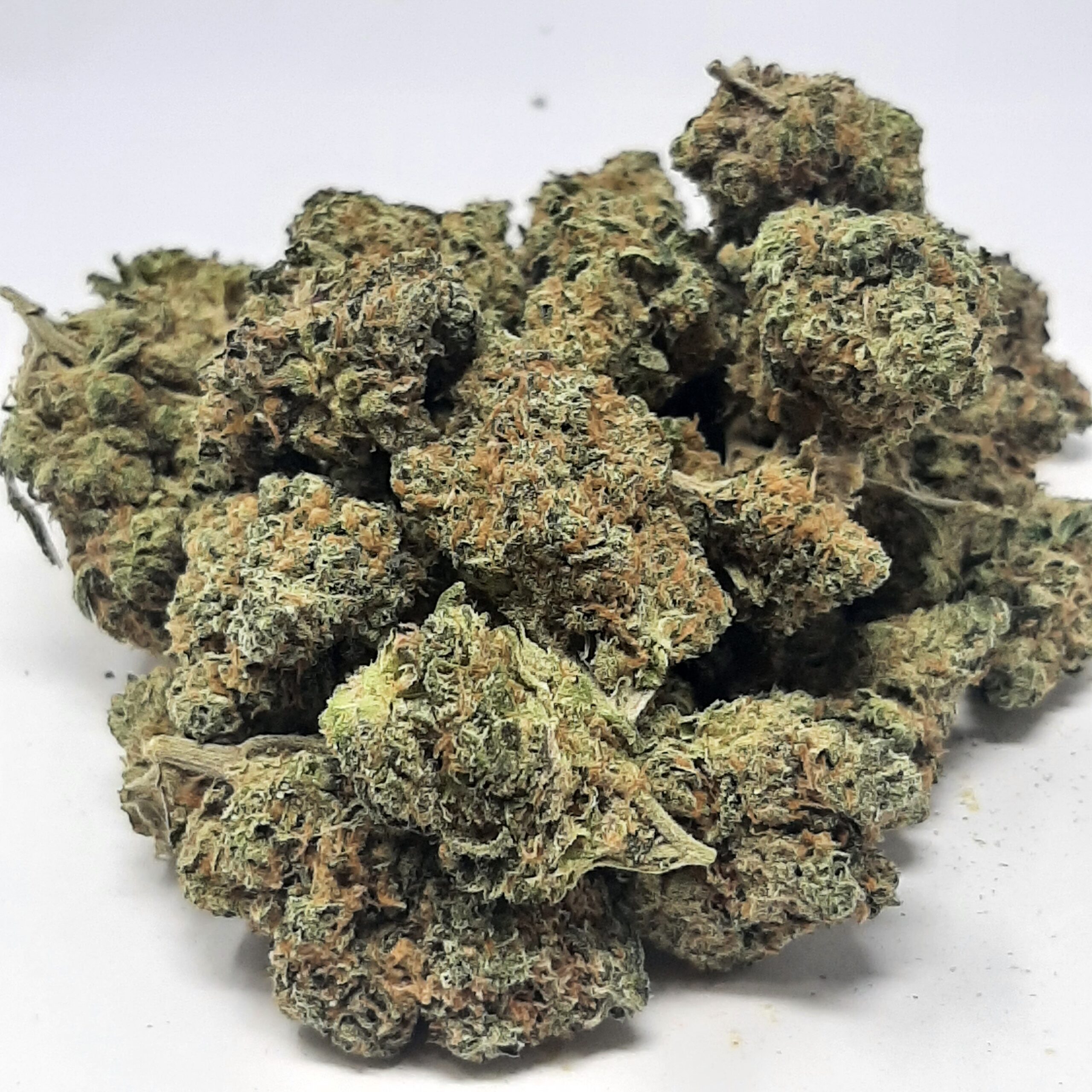 Peanut Butter Rockstar, also known as “PB Rockstar,” is an indica dominant hybrid strain (80% indica/20% sativa) created through crossing the delicious Peanut Butter Breath X Rockstar X Mendo Breath strains. This triple-cross creates the perfect potent strain with soothing effects that can be a bit confusing at times. The Peanut Butter Rockstar high is both calming yet energizing in nature, with some effects that will have you questioning its indica dominance. The high will start with a subtle tingle in the limbs and palms, filling you with a lightly stimulating energy. This energy will soon begin to seep into your brain, lifting you into a place of euphoria that has you a bit out of touch with reality but totally okay with it. The physical energy will soon begin to ebb and fade away, leaving you totally calm from head to toe but not quite ready to get to sleep. With these effects and its insanely high 29-33% average THC level and 0-1% average CBD level, Peanut Butter Rockstar is often said to be great for treating experienced patients with chronic pain, inflammation, arthritis, chronic fatigue, depression or mood swings, chronic stress or anxiety/ This bud has a sweet and creamy vanilla peanut butter cookie flavor with a spicy caramel hash aroma to go along with it. Peanut Butter Rockstar buds have dense, pepper-shaped emerald-green nugs with dark purple leaves, super thin orange hairs and tiny white trichomes.