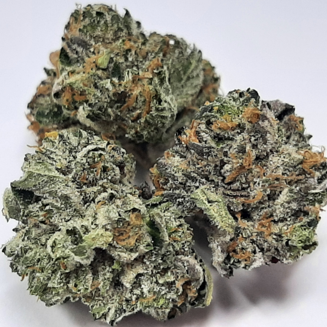 Atomic is an indica dominant hybrid strain (70% indica/30% sativa) created through crossing the classic (OG Kush X Chemdawg) X THC Bomb strains. This powerhouse bud packs an insanely potent high thanks to its crazy high 26-30% average THC level. The high starts with a potent rush of cerebral effects, slamming into your brain with a heavy boost of euphoria. You’ll feel an influx of creativity come next, filling your mind with rich artistic visions and peaceful bliss. As your mind soars, your body will begin to settle into a deeply relaxing state, leaving you slightly sedated and utterly couch-locked for hours and hours on end. Soon, these effects will turn pretty stoney and heavy, leaving you dozing on and off before you fall into a deep sleep. With these effects and its high potency, this bud is often chosen to treat conditions such as depression, insomnia, chronic stress, headaches, and inflammation. This bud has a super spicy woody flavor with hints of skunky diesel upon exhale. The aroma is very earthy and spicy with a skunky pungent overtone accented by fuel and pine. Atomic buds have fluffy olive green nugs with dark orange hairs and a coating of frosty amber crystal trichomes.
