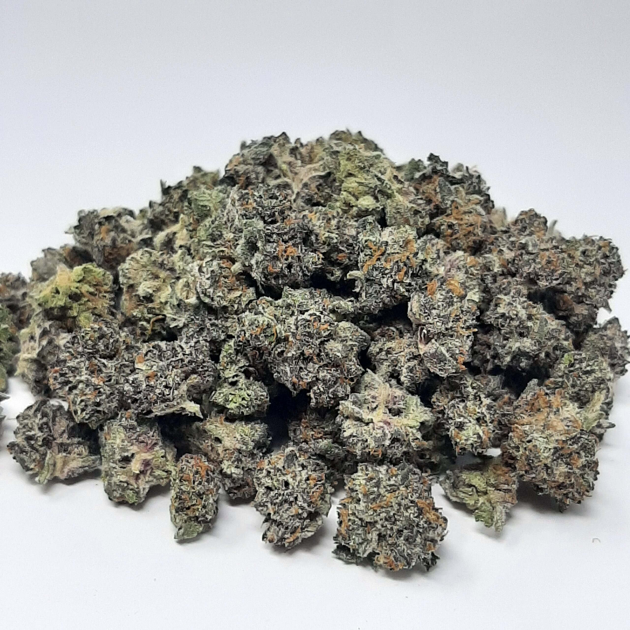 Purple Space Cookies is an indica dominant hybrid strain (80% indica/20% sativa) created through crossing the infamous Durban Poison X Girl Scout Cookies strains. Best known for its gorgeous appearance and super tasty flavor, Purple Space Cookies is one for the ages. This bud has super dense elongated grape-shaped dark olive green nugs with deep purple undertones, dark twisty hairs and a thick frosty blanketed coating of purple-tinted white crystal trichomes.